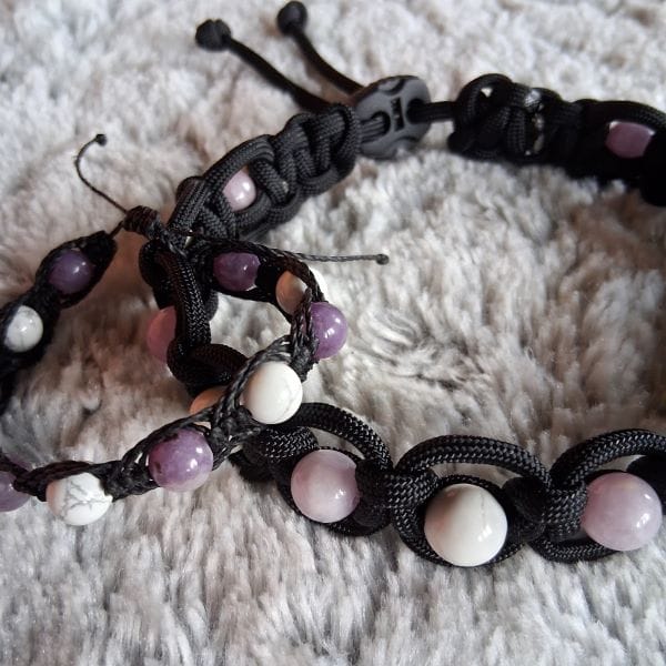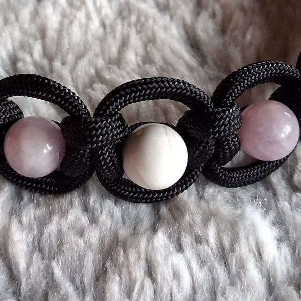 Réalisé à la main en pierres naturelles de Lépidolite et de Howlite, il aide à apaiser les animaux anxieux, stressés, angoissés ou hypersensibles, et favorise un état de calme et de sérénité au quotidien.