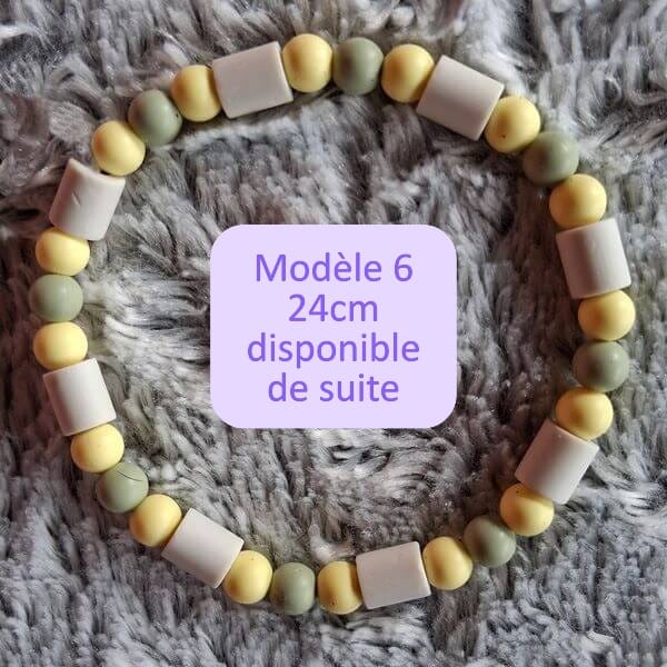 - Design coloré grâce aux perles en silicone disponibles en plusieurs coloris