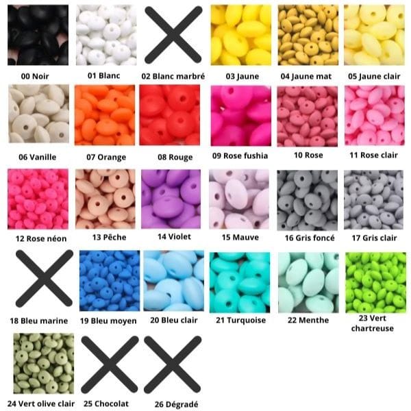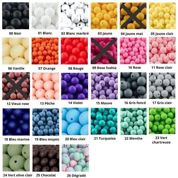 - Design coloré grâce aux perles en silicone disponibles en plusieurs coloris
