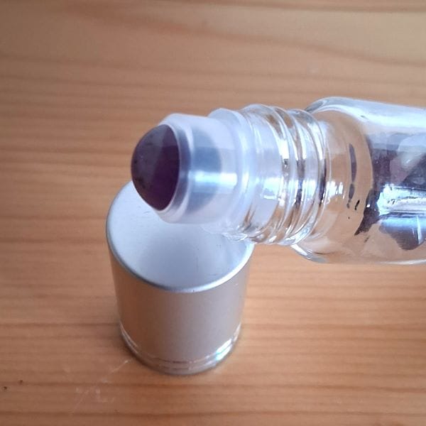 Remplir le Roll-on Améthyste d’une huile végétale (huile d’amande douce, jojoba,…) avec 2 gouttes d’huiles essentielles choisies en fonction de leurs propriétés en prenant soin de vérifier que celles-ci soient sans danger pour la peau. Vous pourrez l’utiliser avec la lavande ou la camomille romaine par exemple.